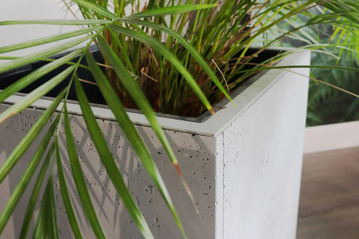 Nowoczesne kształty i wyraźne krawędzie. Wszystkie donice z betonu architektonicznego Luxum zostały starannie zaprojektowane. Istnieje możliwość dostarczenia donic z otworami drenażowymi do odprowadzania nadmiaru wody, aby chronic system korzeniowy roślin. Do donic do wnętrz dostępna jest opcjonalnie dodatkowa hydroizolacja, co zapobiega zlaniu podłoża.